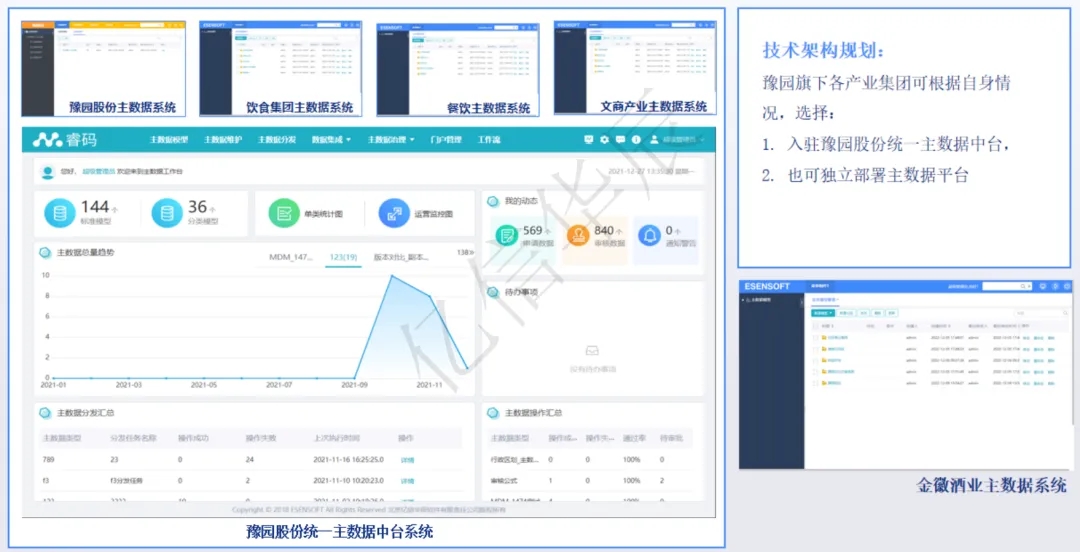 豫園旗下各產(chǎn)業(yè)集團可根據(jù)自身情況,選擇入駐豫園股份統(tǒng)一主數(shù)據(jù)中臺,也可獨立部署主數(shù)據(jù)平臺。