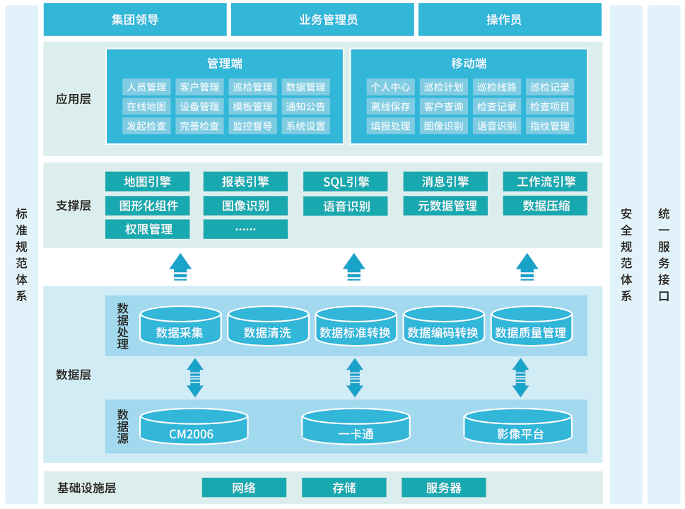 建設標準規范體系和安全規范體系,具體包括數據標準規范、接口標準規范的定義,以及應用安全、數據安全等建設。