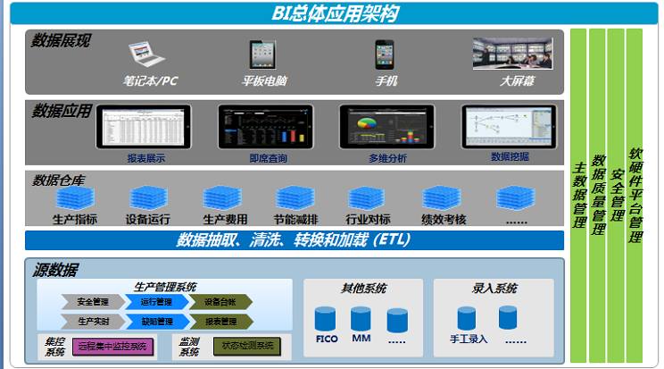 基于數(shù)據(jù)倉庫理念和思想,對公司不同應用系統(tǒng)的數(shù)據(jù)進行整合,實現(xiàn)新能源公司總部及各分、子公司的核心業(yè)務數(shù)據(jù)集中、集成與優(yōu)化整合,統(tǒng)一指標口徑,建立新能源電力公司的數(shù)據(jù)中心,從而消除信息孤島,實現(xiàn)所有業(yè)務數(shù)據(jù)的統(tǒng)一管理。