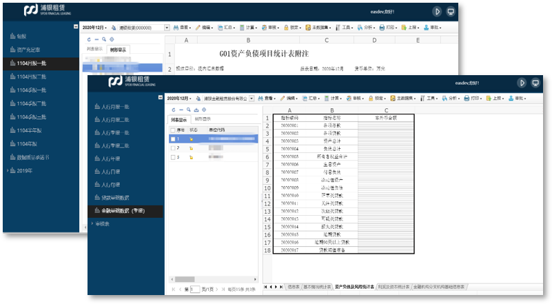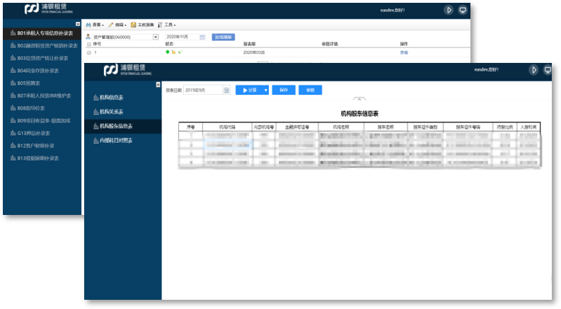 數據補錄:包含承租人專項信息、融資租賃資產核銷、信貸資產轉讓、同業存放、預算表等報表補錄,將缺失數據按機構、時間維度進行人工填報。