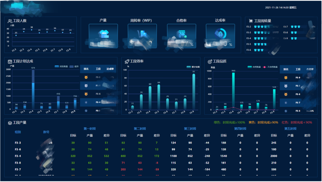 該項目為生產部提供全流程監管報表,并配合移動端、電視、大屏多種展現形式,在車間、園區、監控中心多個地點同時進行監控:(注:以下所有數據均已脫敏)