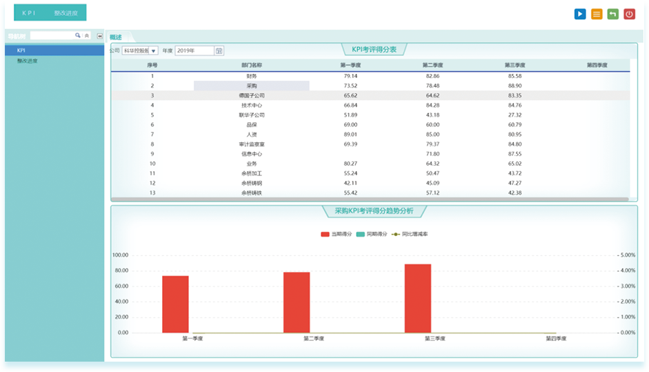 科華控股智能分析平臺的建設完成了總經理駕駛艙、KPI管理、財務管理、質量管理和采購管理五大模塊的界面,項目工作按照系統設計方案中規定的技術指標和技術參數,根據科華控股有關的要求,完成了系統的建設,為科華控股的公司經營提供了更加便捷有效的管理方式。系統目前工作穩定,達到了應有的性能和可靠性。