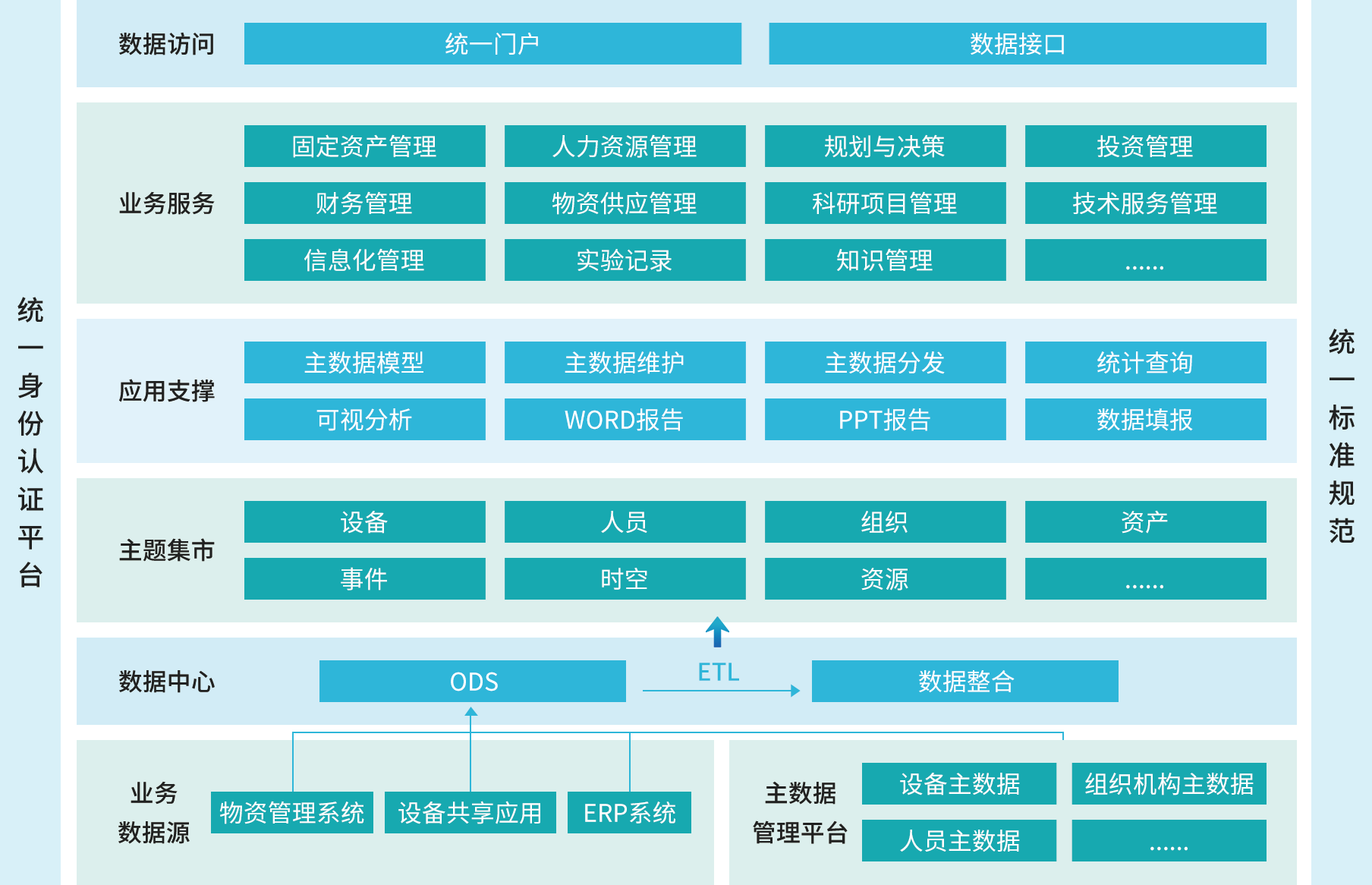 中石化石油化工科學(xué)院數(shù)據(jù)管理平臺的建設(shè),一方面實(shí)現(xiàn)主數(shù)據(jù)管理系統(tǒng)建設(shè),另一方面整合物資管理系統(tǒng)、設(shè)備共享應(yīng)用、ERP系統(tǒng)、科研管理系統(tǒng)等各類型應(yīng)用系統(tǒng),建設(shè)成中石化石油化工科學(xué)院數(shù)據(jù)管理中心,為其他應(yīng)用工作提供數(shù)據(jù)服務(wù),為管理部門業(yè)務(wù)工作賦能。