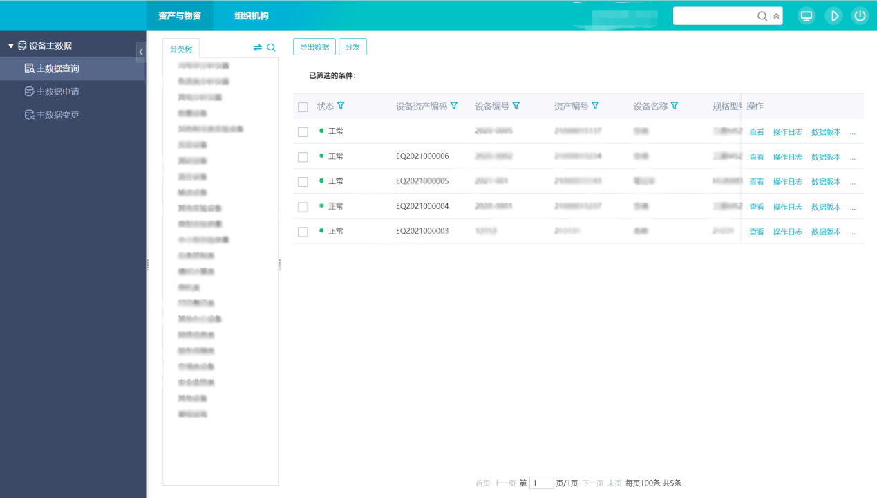 本次項目主要完成設(shè)備主數(shù)據(jù)建設(shè),以及組織機(jī)構(gòu)相關(guān)主數(shù)據(jù)模型建設(shè)。設(shè)備主數(shù)據(jù)主要包括設(shè)備編號、資產(chǎn)編號、設(shè)備名稱、規(guī)格型號、技術(shù)參數(shù)、生產(chǎn)廠家、國別、資產(chǎn)原值、分類、保管人、所在班組、保管部門、設(shè)備狀態(tài)等基本信息,其中保管人、所在班組、保管部門與組織機(jī)構(gòu)主數(shù)據(jù)關(guān)聯(lián)。