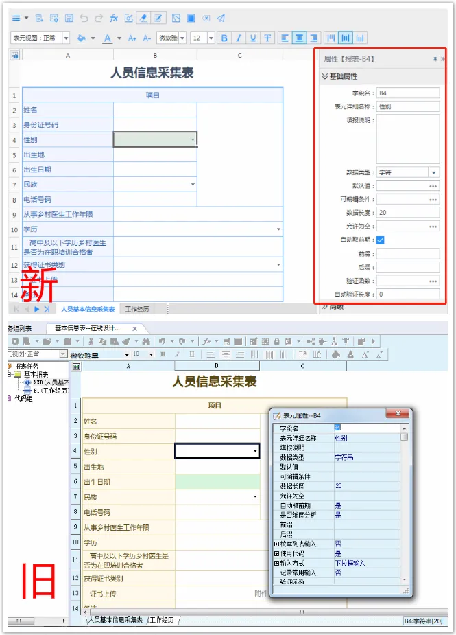 新版本的設計器,采用純web的設計風格,界面更清晰。報表和表元屬性,由原來的彈框設置,更改為右側屬性設置,讓用戶在設計報表時更加方便快捷。
