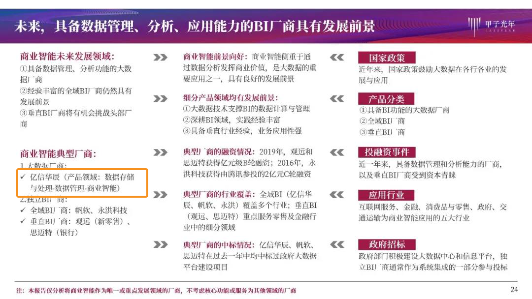 億信華辰作為具有BI功能的大數據廠商,能夠實現數據采集、存儲、管理、分析與可視化應用。