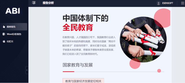 報告分析:Word和PPT是職場人士使用頻率最高的匯報工具。考慮到這一使用場景,ABI支持Word式分析報告、即席報告和幻燈片滿足用戶不同的演示匯報需求。