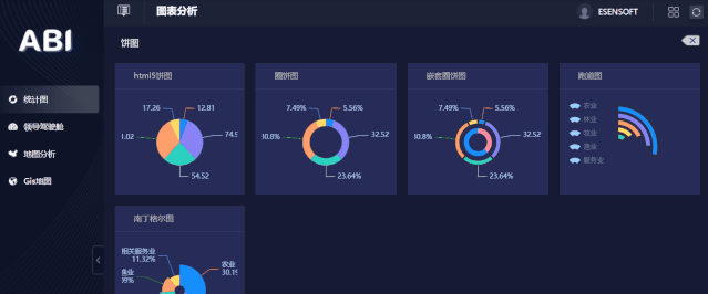 圖表分析:億信ABI支持上百種統計圖樣式,每款統計圖的顏色、樣式皆可按照喜好自定義。用它實現領導駕駛艙,可以自定義使用報表模板擁有的所有的數據展現形式,如:地圖、表格、富文本、繪圖、統計圖等等。