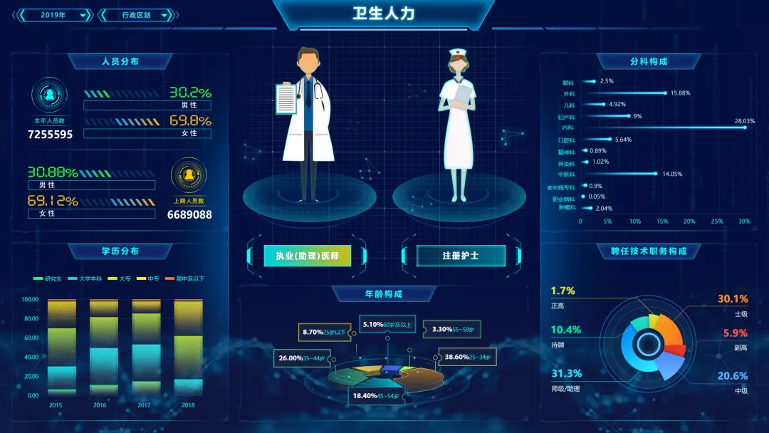 實現衛生資源、醫療服務、疾病控制、衛生監督、婦幼保健、統計年鑒等衛生信息資源的快速查詢與分析;構建領導駕駛艙,重點呈現領導關注的“人、財、物”KPI指標,為領導決策提供依據。