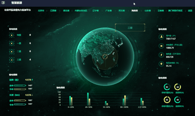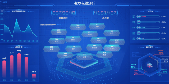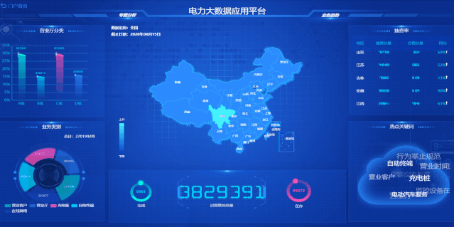 酷屏支持整合電力部門現(xiàn)有信息系統(tǒng)的數(shù)據(jù)資源,覆蓋基建、運(yùn)檢、調(diào)度、生產(chǎn)、營(yíng)銷、安監(jiān)等多個(gè)業(yè)務(wù)領(lǐng)域。針對(duì)領(lǐng)導(dǎo)視察、迎檢匯報(bào)、客戶參觀等情景,支持靈活構(gòu)建可視化匯報(bào)主題,并可提供多種可視化手段,對(duì)電網(wǎng)側(cè)數(shù)據(jù)、用戶側(cè)數(shù)據(jù)、泛在電力物聯(lián)網(wǎng)建設(shè)應(yīng)用成果、保電任務(wù)、應(yīng)急處置流程等內(nèi)容進(jìn)行動(dòng)態(tài)展示。