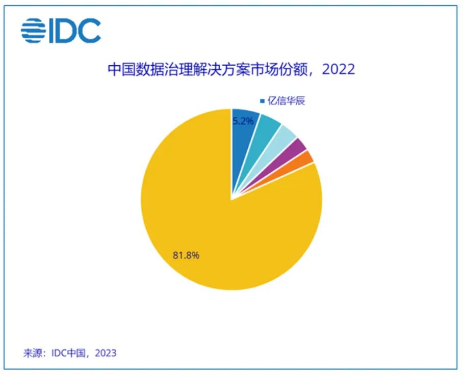 數(shù)據(jù)治理市場份額》報(bào)告,報(bào)告顯示,2022年中國數(shù)據(jù)治理解決方案市場相比2021年增長了7.4%,其中億信華辰以5.2%的市場份額穩(wěn)居榜首,這也是億信華辰再度蟬聯(lián)該項(xiàng)桂冠,充分肯定億信華辰在中國數(shù)據(jù)治理領(lǐng)域持續(xù)處于領(lǐng)跑地位,彰顯了億信華辰在數(shù)據(jù)治理賽道的絕對實(shí)力。