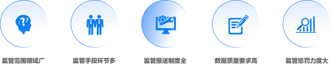我國金融監管體系不斷改革、完善,目前主要的監管制度包括16項,幾乎覆蓋了銀行全部業務,而且理念方法和手段也在不斷升級迭代,報送數據從統計匯總類、業務主題類,逐漸向明細類演變;報送頻率從年、半年、季、月,逐漸向月、日,甚至0.5日演變,可以看到金融監管越來越精細化,考核力度越來越大。