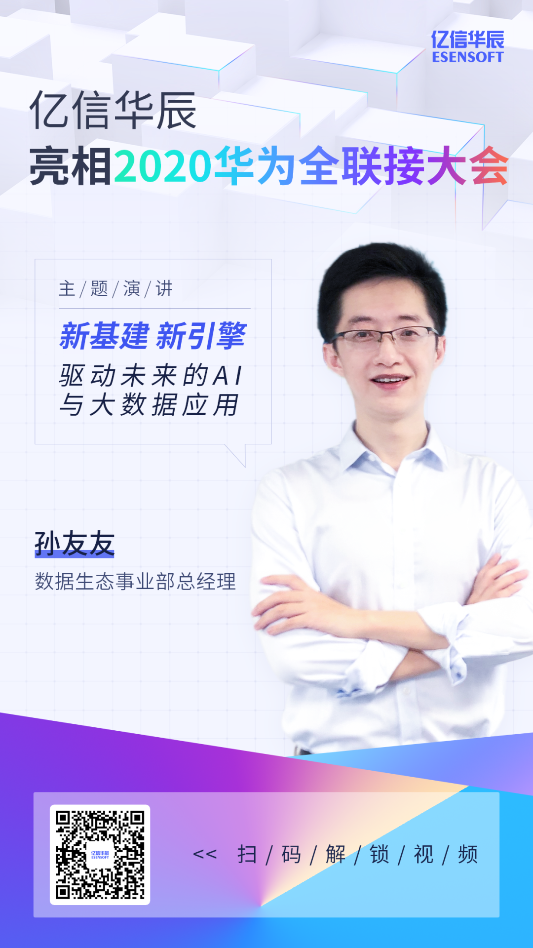 今年的《政府工作報告》首次提出“兩重一新”,新基建正在如火如荼地推進。各大政企該如何破局、布局才能抓住這次機遇,順利乘上東風?此次會上,億信華辰數據生態事業部總經理孫友友帶來了以