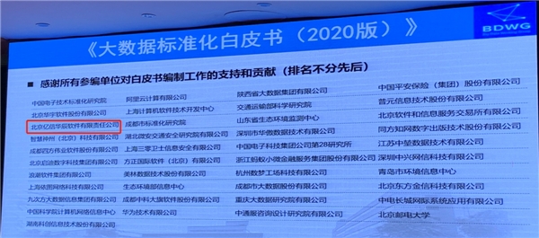 數據標準化工作會議上,中國電子技術標準化研究院、全國信標委大數據標準工作組重磅發布了《大數據標準化白皮書( 2020 版)》(簡稱《白皮書》)。《白皮書》由億信華辰深度參與編寫,并收錄了億信華辰參與建設的招商租賃、中國進出口銀行、中國農業發展銀行