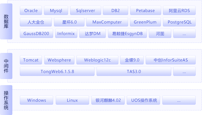 億信ABI5.2.4積極兼容國內各大廠商的部署環境:兼容MaxComputer、人大金倉數據庫、GreenPlum數據庫;支持uos操作系統,龍芯CPU和鯤鵬CPU等。