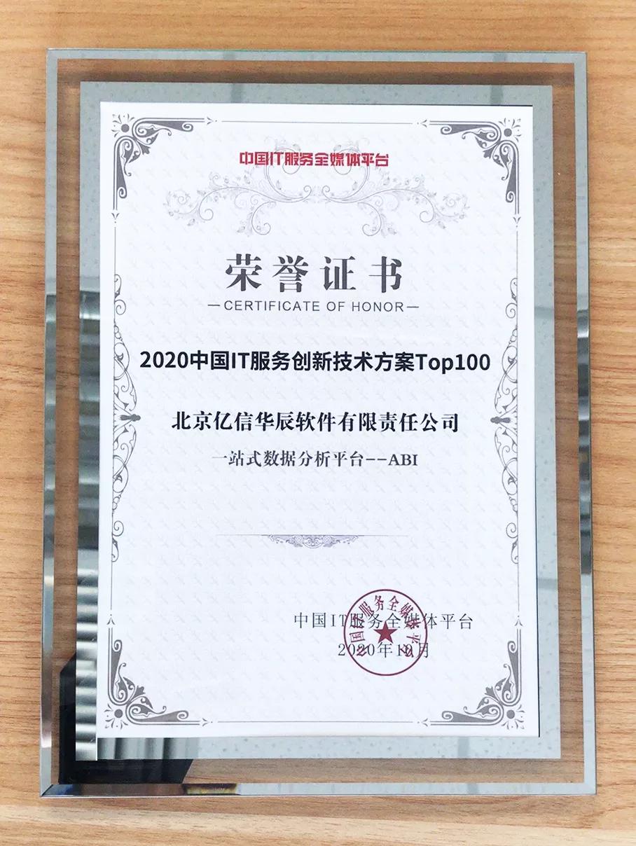 中國IT服務創新大會頒發了各項IT創新獎項,億信華辰一站式數據分析平臺ABI榮獲【2020中國IT服務創新技術方案Top 100】。