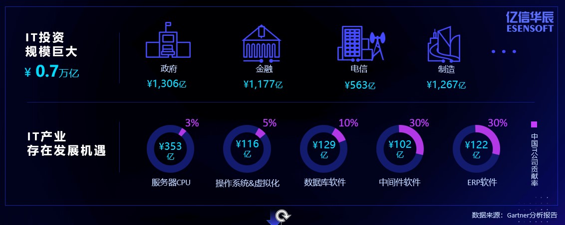 中國IT市場的貢獻率很低,大頭還是被國外廠商所占領,國內的IT投資規模卻是巨大的,潛力無限。