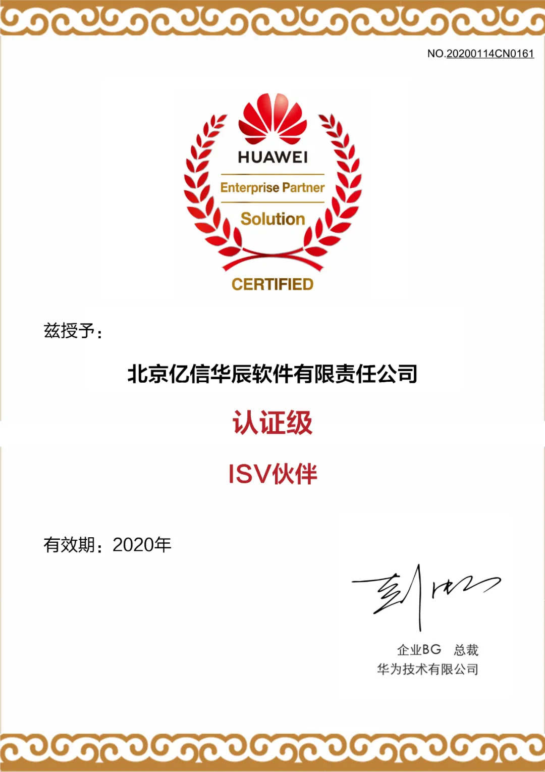 2020年,億信華辰更是有幸成為華為認證級ISV伙伴,與華為在市場、營銷、技術等多方面達成深度合作。