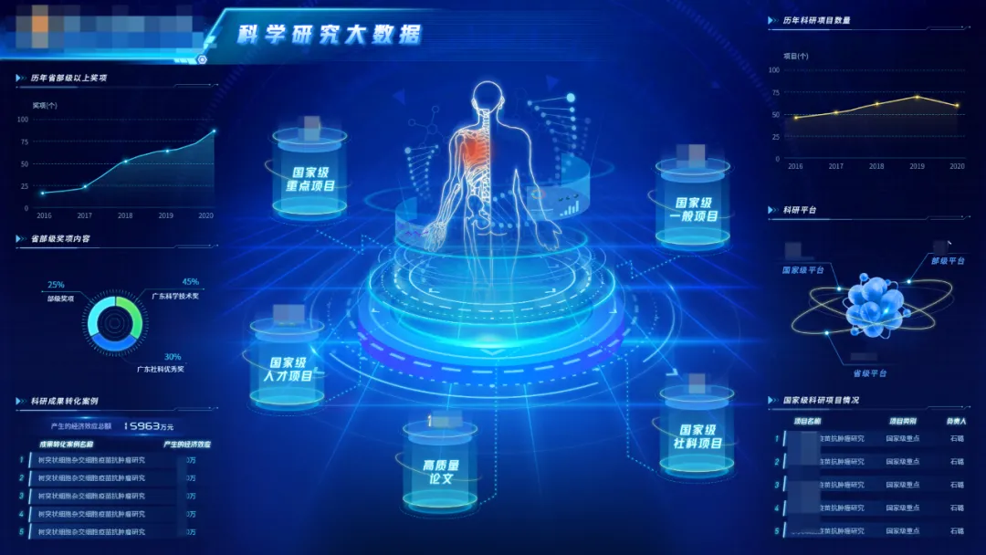 基于億信ABI軟件,中山大學打造可視化大屏項目,可以全局掌握整個學校的學校概況、師資隊伍、教學資源、科學研究、學生發(fā)展、就業(yè)情況和日常運營情況。通過師生分析,來展現(xiàn)學校的整體的實力,對校內師資力量進行全局展示。通過院系分析,實時掌控院系整體建設情況。通過專業(yè)建設分析,掌控全校一流專業(yè)設點,雙一流專業(yè)的獲獎情況,體現(xiàn)校內校外優(yōu)勢專業(yè)的整體實力。
