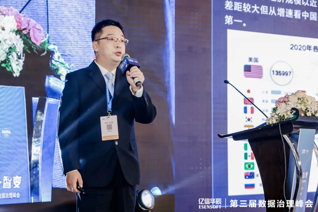 作為本次峰會的主辦方代表,億信華辰首席運營官毛大群為大家帶來《全域數治 智變革新》主題演講。他提到,“我國政府和企業端已經在數字經濟進入全社會多層次、多領域、多效能的全域治理,在全域治理下的數字治理,我們提出的概念叫做“全域數治”。用一個公式定義全域數治,全域數治=全域治理×數據治理。在整個全域治理的體系下,數據治理的作用是提升全域治理效果的倍增器,不是簡單的加法。”