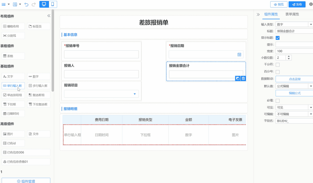 強大的表單設計器,其中表格組件更加靈活易用;全終端的