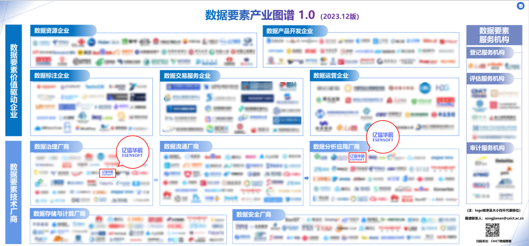 圖譜共對1000多家單位信息進行了統計,涉及金融、通信、互聯網、制造業等22類所屬行業。此次圖譜中共展示了271家典型單位,圍繞數據要素價值驅動企業、數據要素服務機構、數據要素技術廠商三大版塊進行梳理。億信華辰入選數據要素技術廠商——