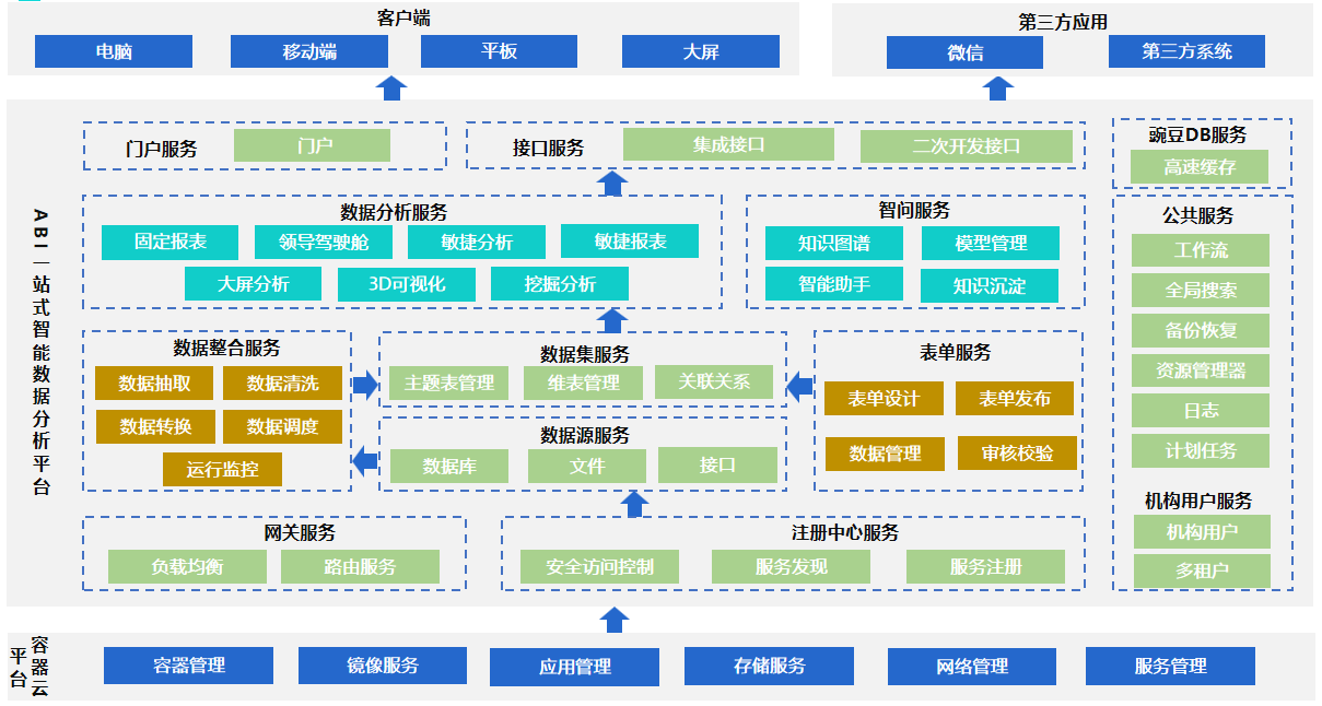作為一款企業級數據分析平臺,億信ABI為了能更好地適應高并發、高性能、高可用場景,產品架構從傳統的架構升級為云原生架構。億信ABI Cloud V5.5.3既支持微服務部署,又支持傳統的本地化部署,滿足多種部署場景。多租戶功能讓多個用戶在同一環境下使用同一套程序,確保用戶間數據隔離,互不影響。