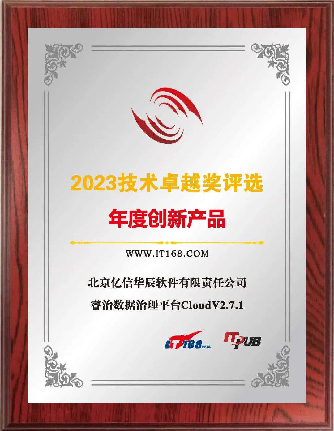 技術卓越獎評選活動由IT168、ITPUB主辦,以技術創新帶動產業變革為核心,以知名專家和用戶評價為參考依據,尋找驅動數字經濟發展的新標桿和新典范,打造科技強國的創新舞臺。此榜單由行業CIO/CTO大咖、技術專家及IT媒體三方聯合評選,評審標準主要依據申報企業、產品、方案等在業界的影響力、技術的先進性和完整性、推進用戶信息化水平提升的有效性等指標,此次睿治數據治理平臺榮獲2023年度創新產品獎,是業界對億信華辰在數字化轉型領域實踐成果的充分認可。