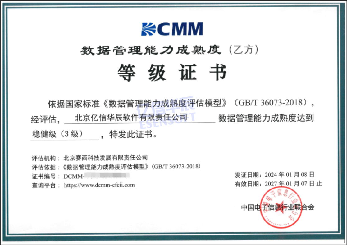 數(shù)據(jù)價(jià)值日益凸顯,數(shù)據(jù)管理已經(jīng)成為了企業(yè)發(fā)展的核心競爭力。近期,中國電子信息行業(yè)聯(lián)合會公布了最新一批獲得國家數(shù)據(jù)管理能力成熟度等級證書的企業(yè)名單,億信華辰成功獲得國家標(biāo)準(zhǔn)DCMM數(shù)據(jù)管理能力成熟度3級(穩(wěn)健級)認(rèn)證,標(biāo)志著億信華辰已具備完善的數(shù)據(jù)管理能力,處于行業(yè)領(lǐng)先水平,能夠?yàn)榭蛻籼峁└訉I(yè)、高效的數(shù)據(jù)管理解決方案。