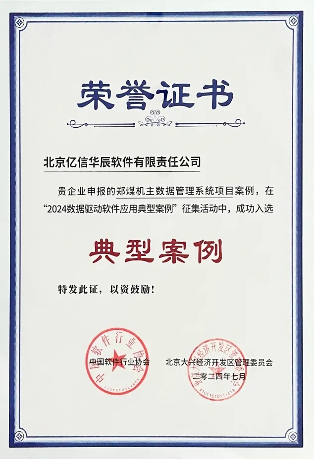 7月4日,2024全球數(shù)字經(jīng)濟大會的重要活動——“數(shù)據(jù)驅(qū)動新質(zhì)軟件高質(zhì)量發(fā)展論壇”在北京市大興區(qū)舉辦,論壇聚焦軟件、大數(shù)據(jù)、人工智能等前沿數(shù)字技術(shù),探索數(shù)字經(jīng)濟如何賦能發(fā)展新質(zhì)生產(chǎn)力。作為深度參與國內(nèi)數(shù)字化轉(zhuǎn)型的一家企業(yè),億信華辰受邀出席本次大會,憑借“鄭煤機主數(shù)據(jù)管理系統(tǒng)項目”這一數(shù)字化案例,榮獲數(shù)據(jù)驅(qū)動軟件應(yīng)用典型案例獎。