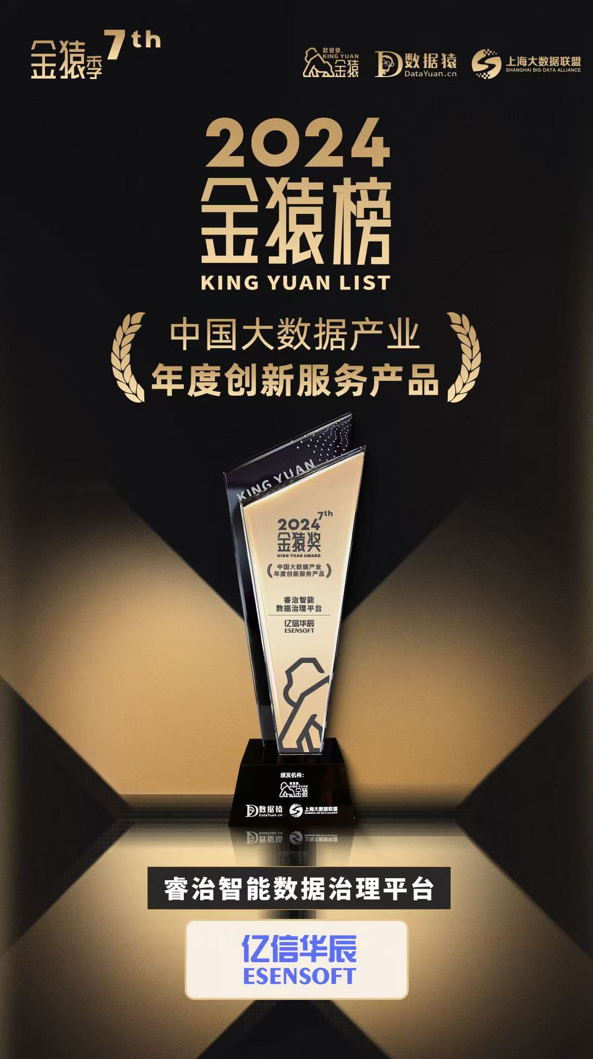 2024年12月26日,由數據猿主辦、以“釋放×數效應 共創智+未來”為題的“第七屆金猿季&魔方論壇——大數據產業發展論壇暨數據要素趨勢論壇”成功舉行。論壇展示了數據產業前沿趨勢,剖析大數據技術最新實踐經驗,并重磅揭曉年度系列獎項。億信華辰自主研發的“睿治智能數據治理平臺”脫穎而出,榮獲中國大數據產業年度創新服務產品獎。