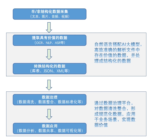 傳統的數據治理主要是圍繞結構化數據開展的,目前已經有40年的發展歷史,隨著人工智能技術的發展,非結構化數據的治理需求逐漸釋放出來,非結構化數據的挖掘和應用進入到企業關注的視野中。