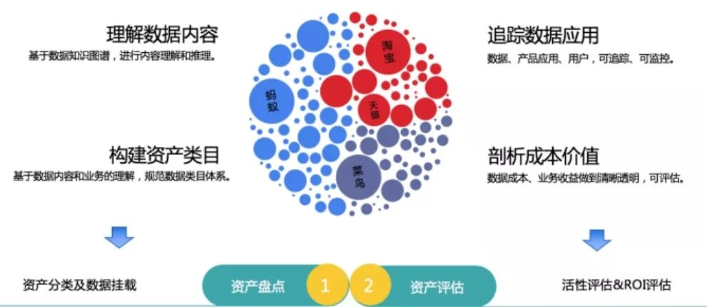 資產分析包括了資產盤點和資產評估兩部分。資產盤點是為了讓使用數據的人員能更好的理解數據,可通過知識圖譜進行內容的理解和推理或構建企業資產目錄;資產評估則對資產的活性、投入產出比進行評估。