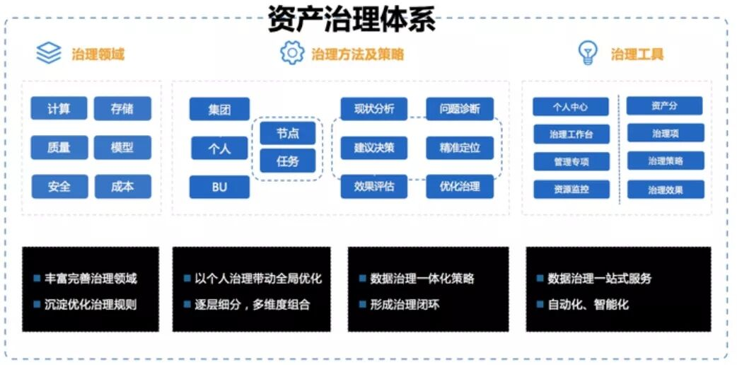 資產治理包括對計算、存儲、治理、模型、安全、成本等領域進行治理,并形成有效的智能治理閉環,將治理方法論沉淀為工具產品輸出。
