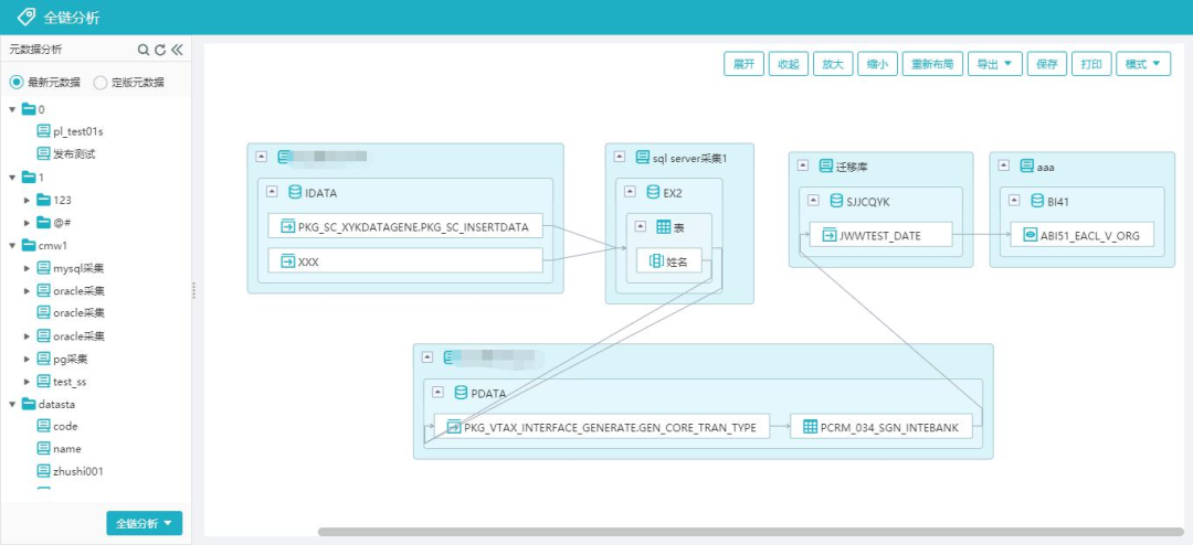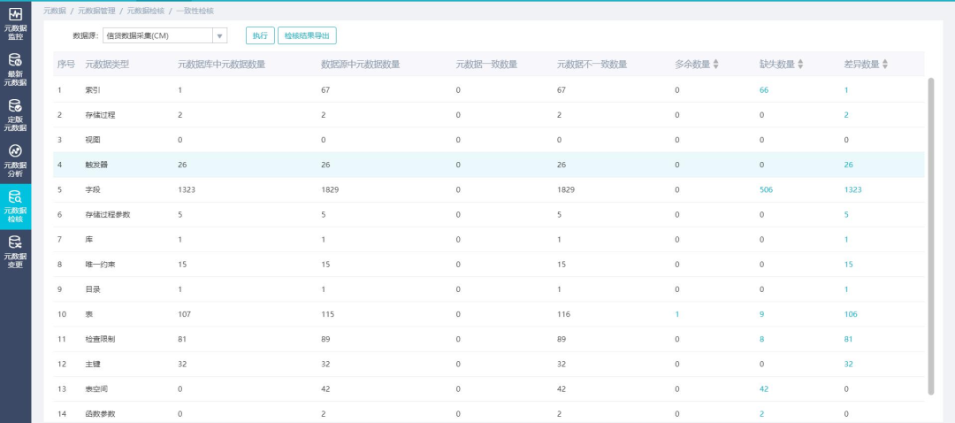 元數(shù)據(jù)管理平臺(tái)提供了豐富的分析應(yīng)用,包括:血緣分析、影響分析、全鏈分析、關(guān)聯(lián)度分析、屬性差異分析、元數(shù)據(jù)對(duì)比分析、重復(fù)元數(shù)據(jù)分析、元數(shù)據(jù)對(duì)比分析、重復(fù)元數(shù)據(jù)分析、同時(shí)支持將分析結(jié)果進(jìn)行導(dǎo)出和收藏保存。