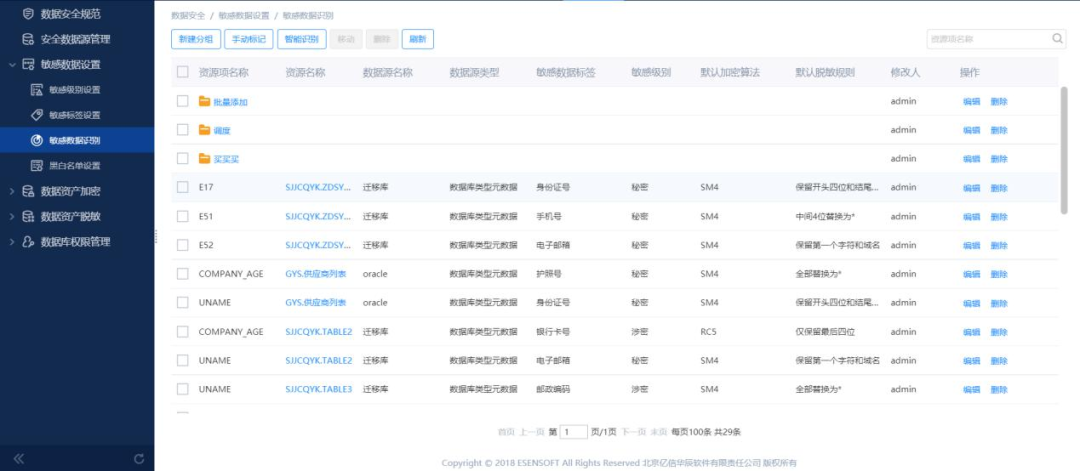 睿治平臺(tái)支持對(duì)敏感數(shù)據(jù)設(shè)置敏感標(biāo)簽、敏感級(jí)別,并能夠?qū)γ舾袛?shù)據(jù)進(jìn)行人工標(biāo)識(shí)和基于敏感標(biāo)簽的智能識(shí)別,全方位落實(shí)敏感數(shù)據(jù)的 分級(jí)分類(lèi)工作。