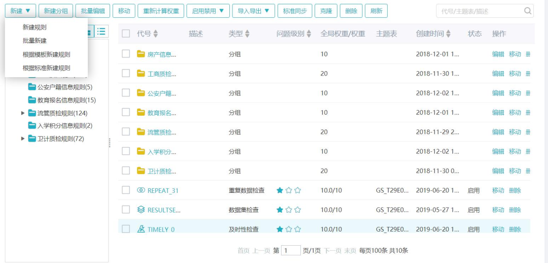除此以外,睿治平臺(tái)內(nèi)置16種規(guī)則模板,用戶(hù)只需通過(guò)簡(jiǎn)單界面化的方式新建規(guī)則。平臺(tái)支持單條和批量建規(guī)則,可以根據(jù)已經(jīng)存在的模板新建規(guī)則,可以根據(jù)標(biāo)準(zhǔn)來(lái)新建規(guī)則,滿(mǎn)足不同場(chǎng)景創(chuàng)建規(guī)則的需求。