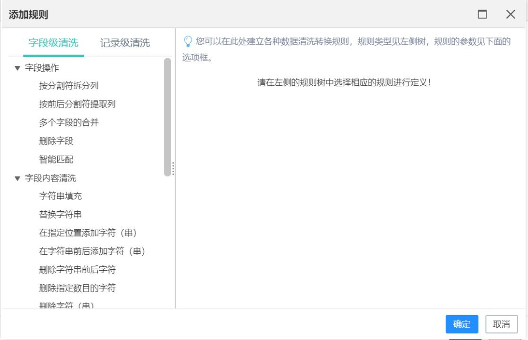 最后,數(shù)據(jù)整合封裝了近30種清洗規(guī)則,用于完成數(shù)據(jù)的字段級(jí)和記錄級(jí)清洗轉(zhuǎn)換,省去了復(fù)雜的表達(dá)式定義,同時(shí)清洗組件支持邊配置邊預(yù)覽清洗前的數(shù)據(jù)變化,支持多條規(guī)則的自動(dòng)全關(guān)執(zhí)行,節(jié)省性能開(kāi)銷(xiāo)。