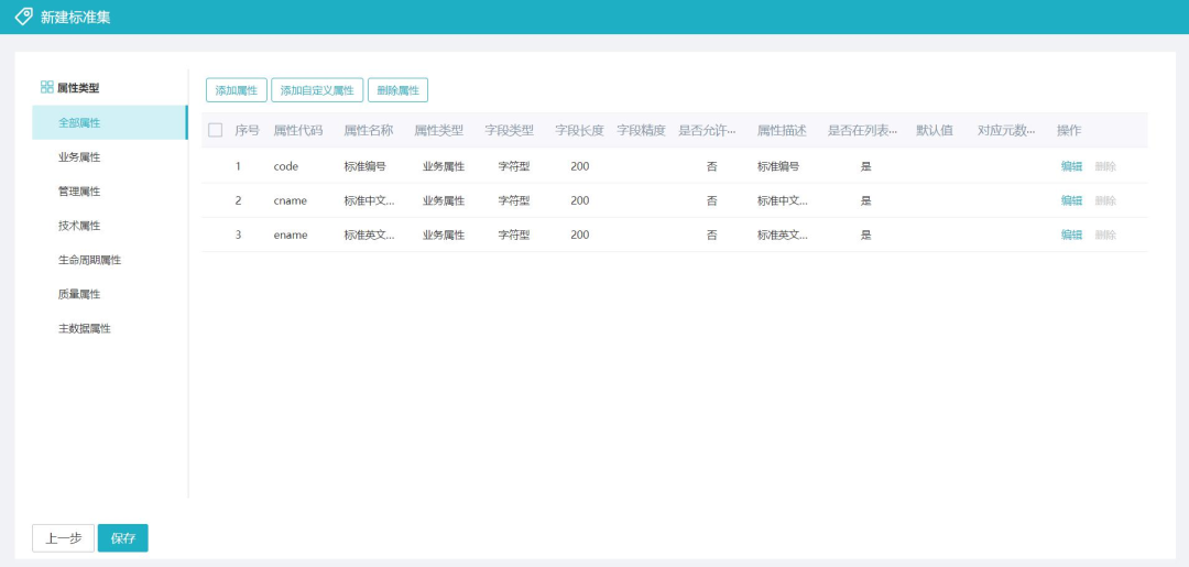 數(shù)據(jù)治理平臺(tái)提供了數(shù)據(jù)標(biāo)準(zhǔn)集管理,內(nèi)置了業(yè)務(wù)屬性、技術(shù)屬性、管理屬性、質(zhì)量屬性、