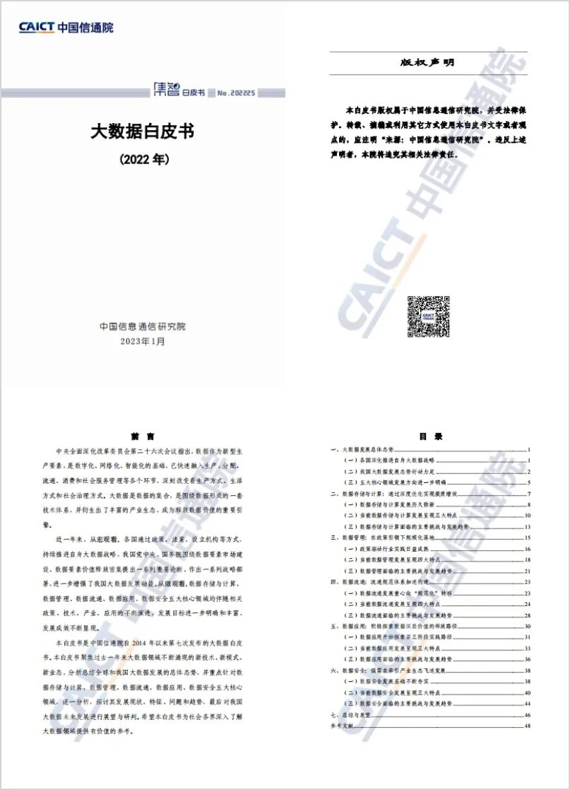 數據價值的重要引擎。《大數據白皮書(2022年)》是中國信通院自2014年以來第七次發布的大數據白皮書。