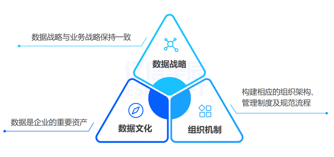 “道”是指天道、自然規律,還指核心思想、本質規律,它是方向性的指引,就是“做正確的事”,而在企業數據資產建設中“道”就是戰略層面,包括了數據戰略、組織機制和數據文化。