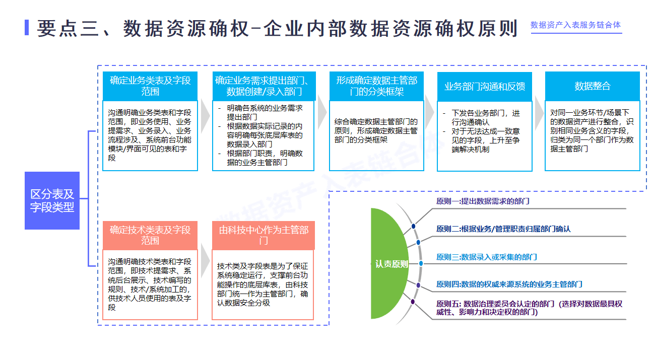 第三還要講企業內部的確權,企業確權是針對獨立法人進行的確權,數據是企業的,但是企業擁有它最后怎么去落呢?在做財務管理時,固定資產的管理一定會有對應的卡片,它的歸屬部門的,同樣的數據資產未來也要歸屬部門,做精細化管理,也是為了方便未來屬主部門、主責部門維護管理所擁有的數據資產。