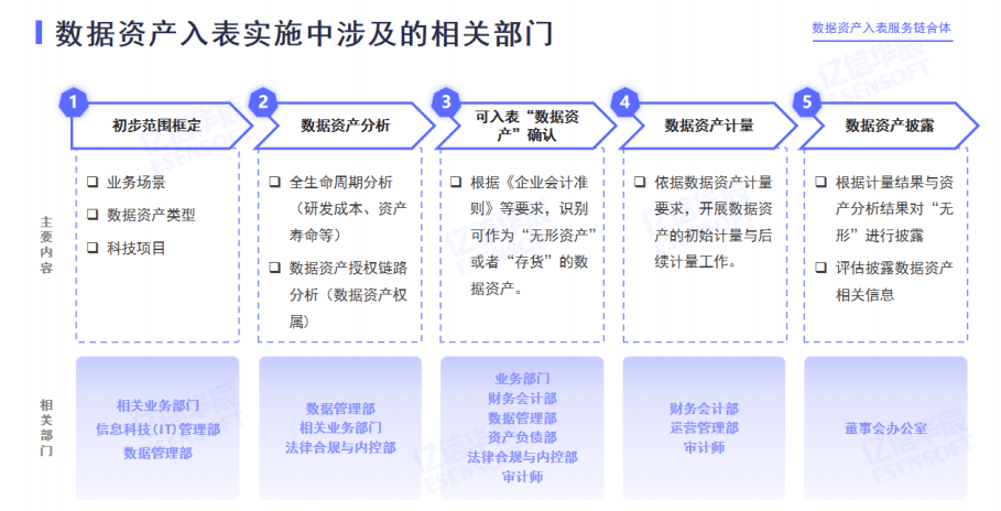 數(shù)據(jù)治理一樣,目前“數(shù)據(jù)治理”在業(yè)內(nèi)已經(jīng)提升到了“公司治理”的范疇,因此數(shù)據(jù)資源入表同樣必須是企業(yè)層面自上而下的推動(dòng),需要董事長和高級管理層的推動(dòng)。但可以確定某一部門作為主導(dǎo)部門,其他所有部門都需要參與,而且不僅是簡單的參與,而是要作為數(shù)據(jù)的核心或所有權(quán)部門共同推動(dòng)。