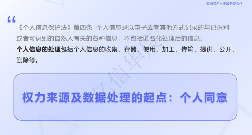 《個人信息保護法》非常重要,是具體指導數據合規和企業日常使用數據的法律。這個立法是因為目前數據市場還未完全建立起來,無法自上而下的立法,所以就選擇了一個最簡單最實用的方法,就是自下。先去設立一些紅線和底線,把紅線設立完后,對于紅線之外能干的目前是空白狀態,在這樣的法律框架下,目前還是處在一個比較靈活的空間。《個人信息保護法》70多條,其核心內容就是為什么要做數據合規,就是把手上這些拿過來的數據做合法性的確認,確認是合法來源,是屬于企業擁有的數據資產。個人同意是數據合規里很重要的一部分,因為需要保護的數據大部分是個人數據,目前企業大部分走的是不正當競爭的立法范疇。