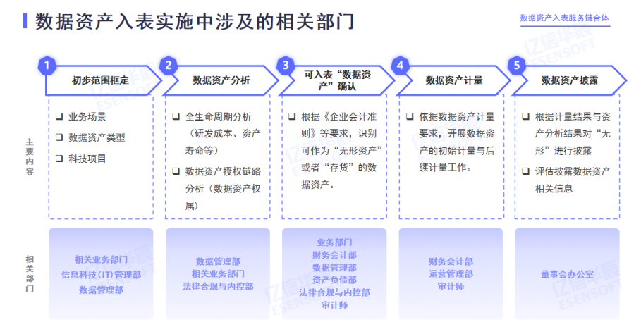 數據治理這件事一樣,目前“數據治理”在業內已提高到“公司治理”的范疇,所以數據資源入表同樣也一定是企業級自上而下推動的,需要董事長、高級管理層去推動。但可以認定某一個部門作為主牽頭部門,其他所有部門都要參與進來,而且不只是簡單的參與,都要作為數據的核心或者說數據的屬主部門一起來推動。