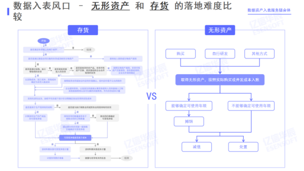 劉晗指出,2024年1月1日以后,企業的信息化建設可以以成本法方式進行入表,信息化建設本身可以轉化為資產,這意味它不僅具備了這個資產的財務價值,還具有了生產和交易價值。對于大家都關心的數據資產到底如何入表的問題,他將其方法拆解為三步,第一步是入表形成原始資產,第二步是形成無形資產收入,第三步是形成存量資產。針對資產類型的選擇,劉晗給出了明確的建議,“基于入表成本以及入表效率考慮,建議大家在目前階段以無形資產入表為首選項”。
