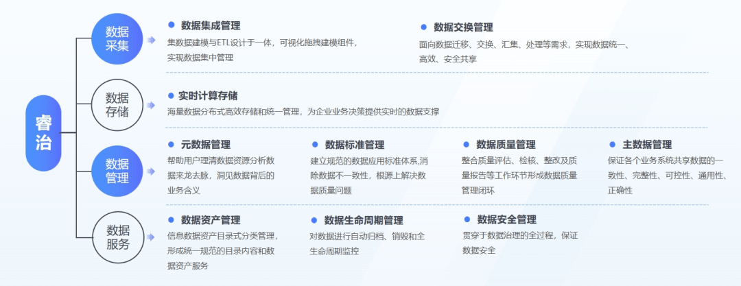 元數據管理等方面。數據治理的目的是挖掘數據資產中的更大價值。