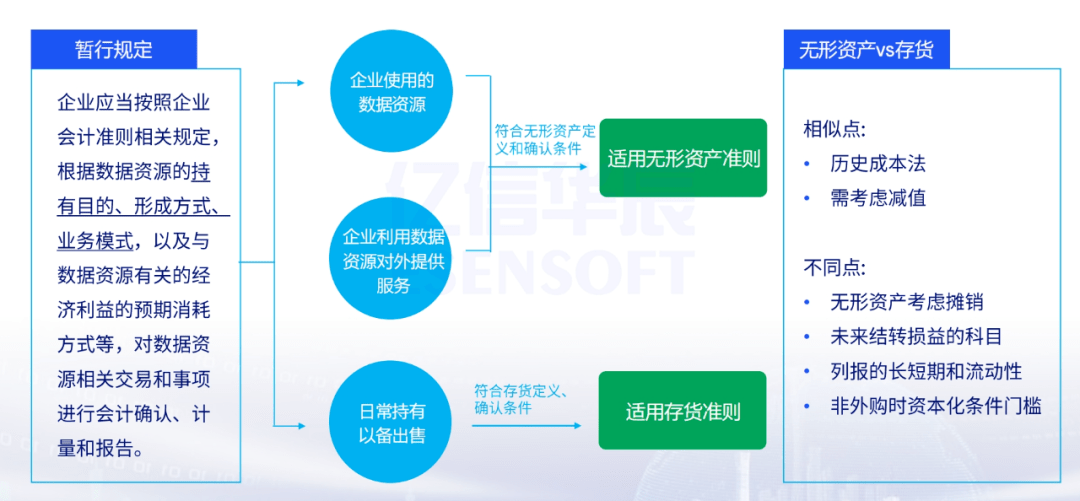 數據資產是指以數據為主要內容和服務的、滿足資產確認條件的數據資源。在《暫行規定》發布之前,許多所謂的“數據資產”未必符合會計準則的資產確認條件。因此,《暫行規定》的制定使得判斷數據資源是否可以稱之為數據資產更為明確。