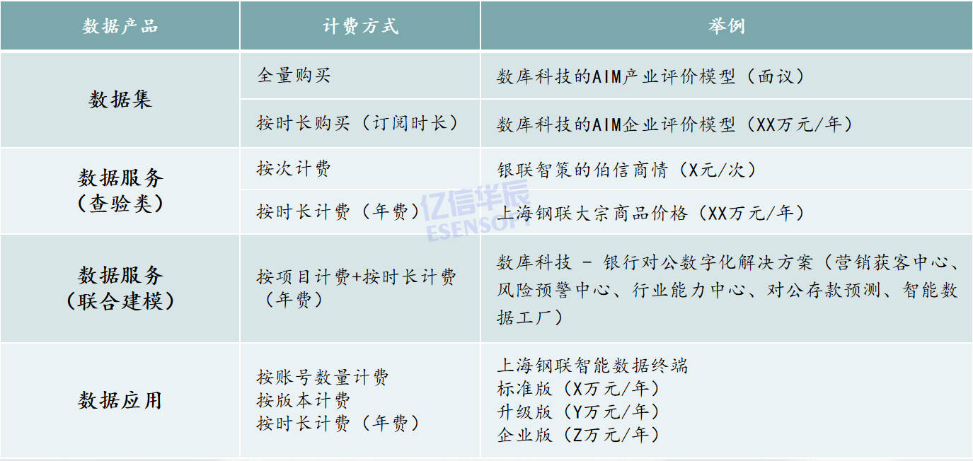 數據產品最終是要拿來賣的,那數據產品的計費方式如下: