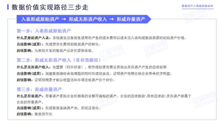 數(shù)據(jù)治理產(chǎn)品與服務(wù)提供商億信華辰提煉出數(shù)據(jù)資產(chǎn)入表三大步驟,以期為有數(shù)據(jù)資產(chǎn)入表需求的國(guó)有企業(yè)和上市公司提供參考。